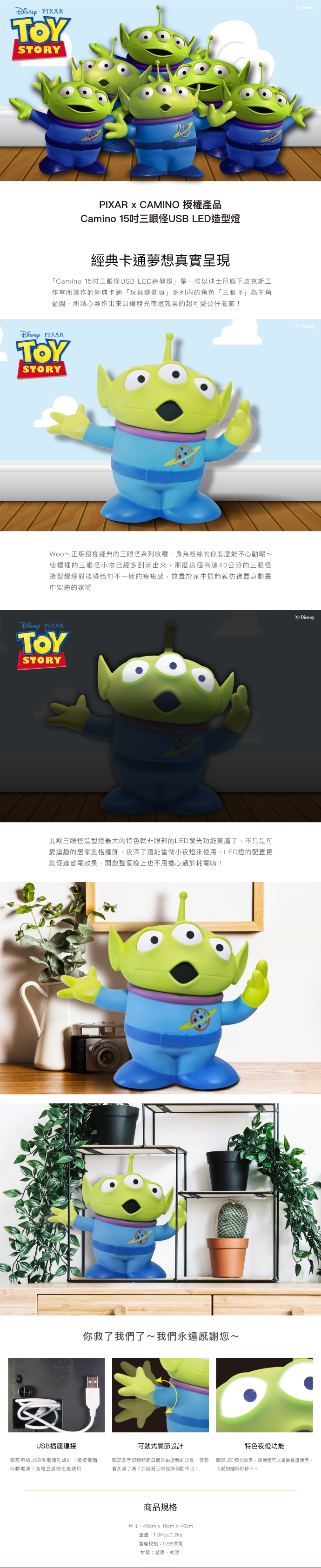 迪士尼 Disney-15吋USB造型燈-三眼仔 Alien